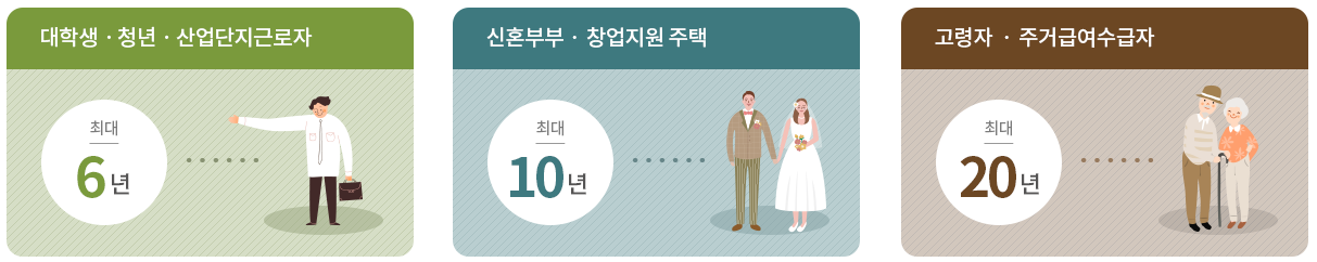 무주택 요건 및 소득·자산 기준을 충족하는 대학생, 청년, 신혼부부*, 산단근로자 등